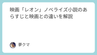 洋画 映画「レオン」ノベライズ小説のあらすじと映画との違いを解説 リュック・ベッソン監督の不朽の名作映画『レオン』。映像の美しさと切ないラストが印象的ですが、実はその世界をより深く補完してくれるノベライズ(小説版)が存在することをご存知でしょうか。映画では語りきれなかったレオンの過去や、マチルダの揺れ動く... 2026.04.17 洋画