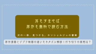 漫画 耳をすませば 原作漫画とジブリ映画の違いをネタバレ解説!打ち切りの真相は? 「ジブリ映画の『耳をすませば』は大好きだけど、原作漫画は読んだことがない」という方は多いのではないでしょうか?実は、柊あおい先生による原作漫画と宮崎駿監督がプロデュースした映画版では、主人公たちの設定や物語の結末が大きく異なります。さらに、... 2026.04.14 漫画邦画